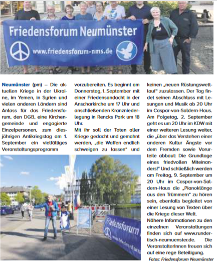 Zum Antikriegstag 2022 haben das Friedensforum NMS, der DGB,